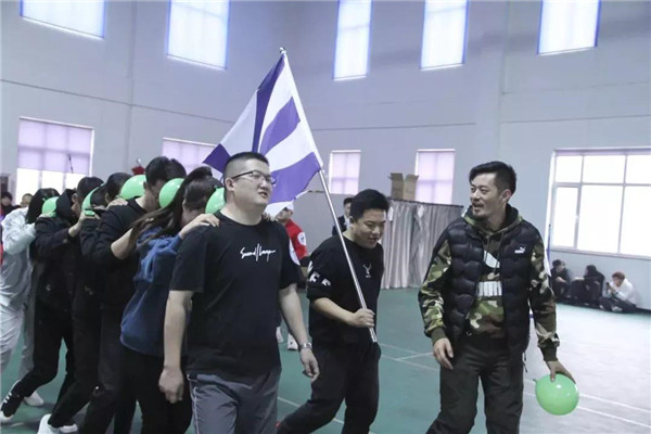 看我們心連心,連著一起向前走。本游戲要求裁判宣布開(kāi)始后,6名隊(duì)員首先吹氣球,并將氣球系好;將系好的氣球放于2人之間并用額頭頂住進(jìn)行前進(jìn),期間有氣球掉落則重新開(kāi)始;隊(duì)伍行進(jìn)距離50米,直至最后一個(gè)人穿過(guò)終點(diǎn)線,用時(shí)最少名次越前。通過(guò)本游戲來(lái)培養(yǎng)大家的團(tuán)隊(duì)精神,提高隊(duì)員們配合、協(xié)作的能力。